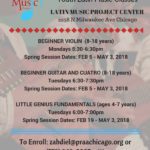 The Latin Music Project, located at 2958 N. Milwaukee, is now accepting enrollment for its spring sessions. Beginner Violin (8-18 years) Mondays, February 5 – May 3 5:30-6:30 p.m. Beginner […]