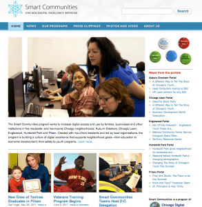 SmartCommunitiesChicago.org has information about all the programs in Smart Communties, including tech trainings, Summer Youth Summer Jobs, and Business Resource Networks, as well as background on the program, contact information, links to photos and video, and more.